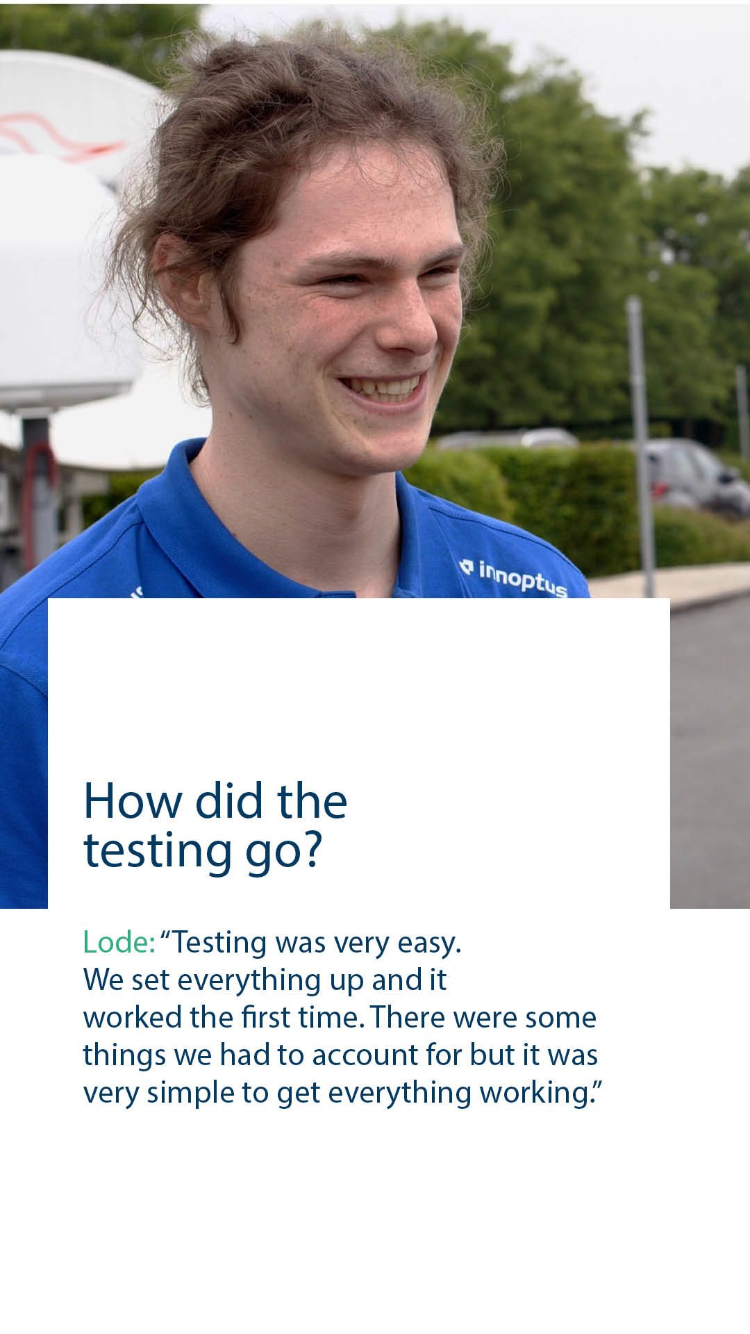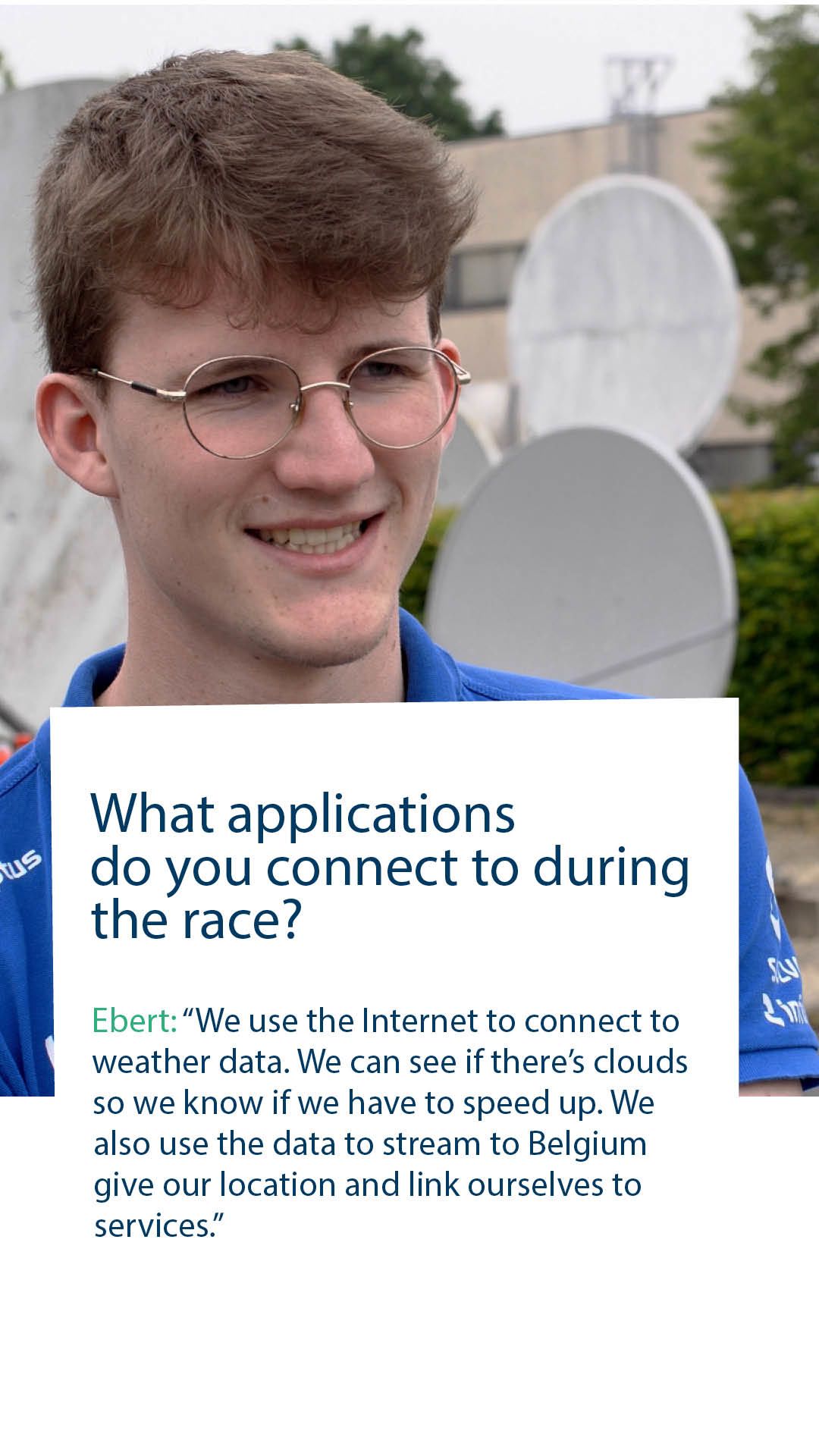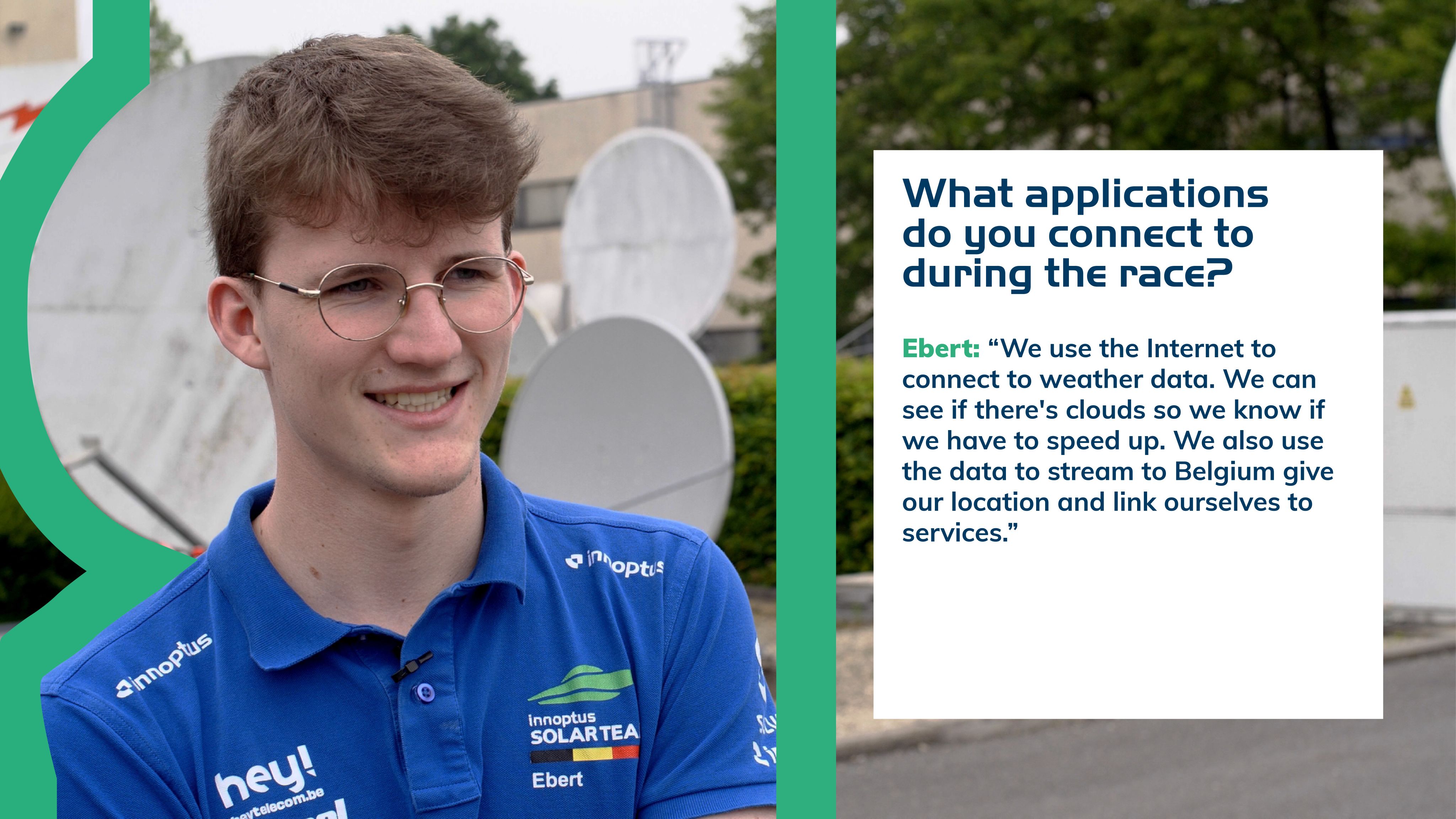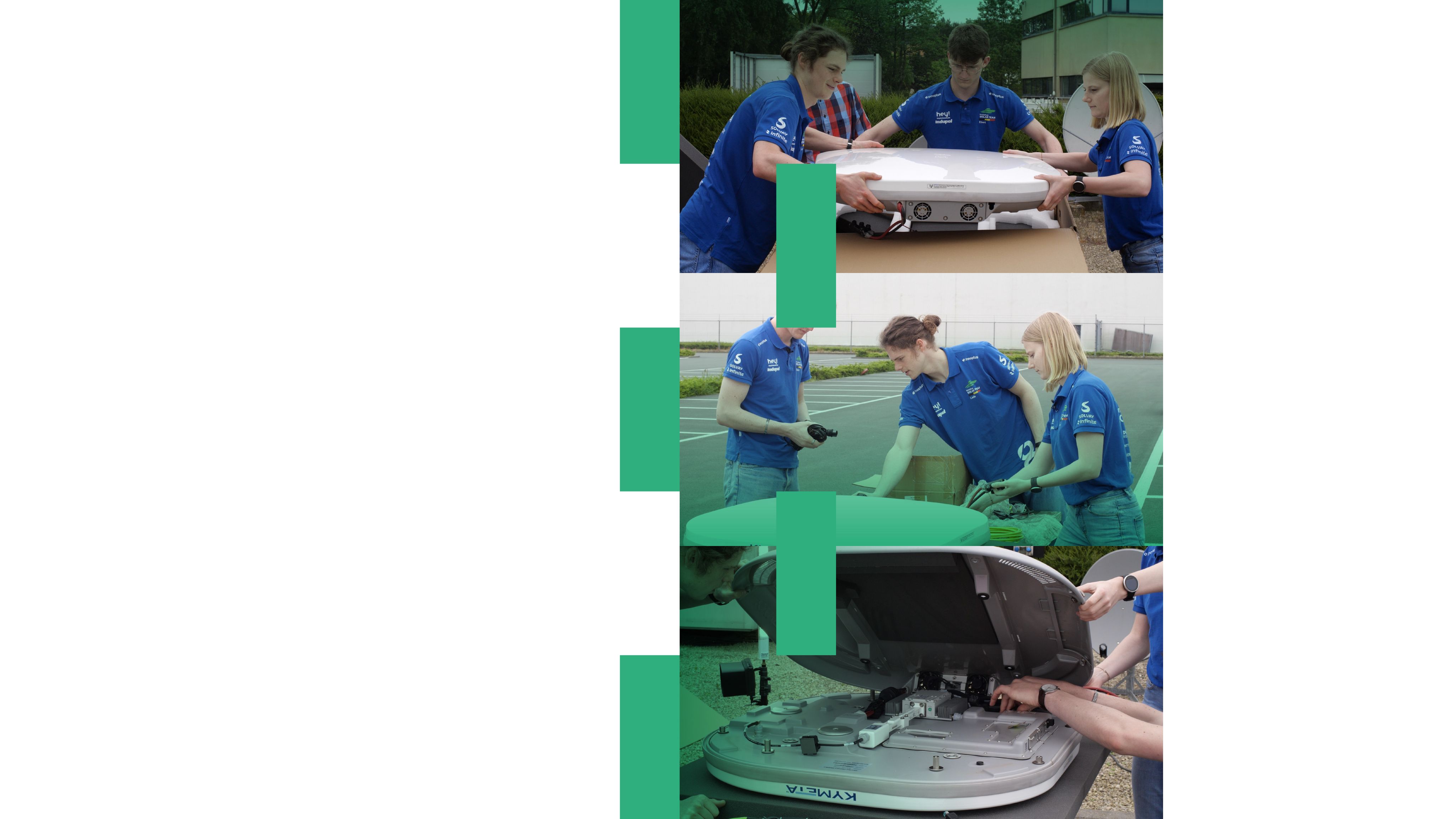 Bo July, Ebert Kiekens and Lode Keppens from the Innoptus team got to grips with the Kymeta flat panel antenna and learned how to establish a connection with the satellite so they can access critical data on their PCs.